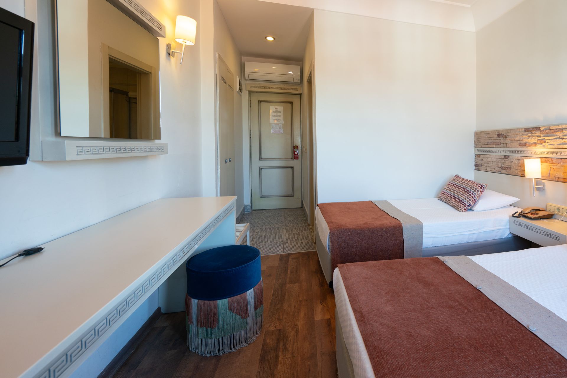 Bir çift kişilik veya iki tek kişilik yatak, Kaleiçi, bahçe veya marina manzarası seçeneği, 9000 BTU split klima, LCD TV, oda içi kasa, telefon, ücretsiz Wi-Fi, minibar, duş, saç kurutma makinesi, 24 saat sıcak su, havlular, terlikler. Standart Çift İkiz odalarımızda laminat zemin bulunmaktadır. Odalarımızda sigara içmek yasaktır.